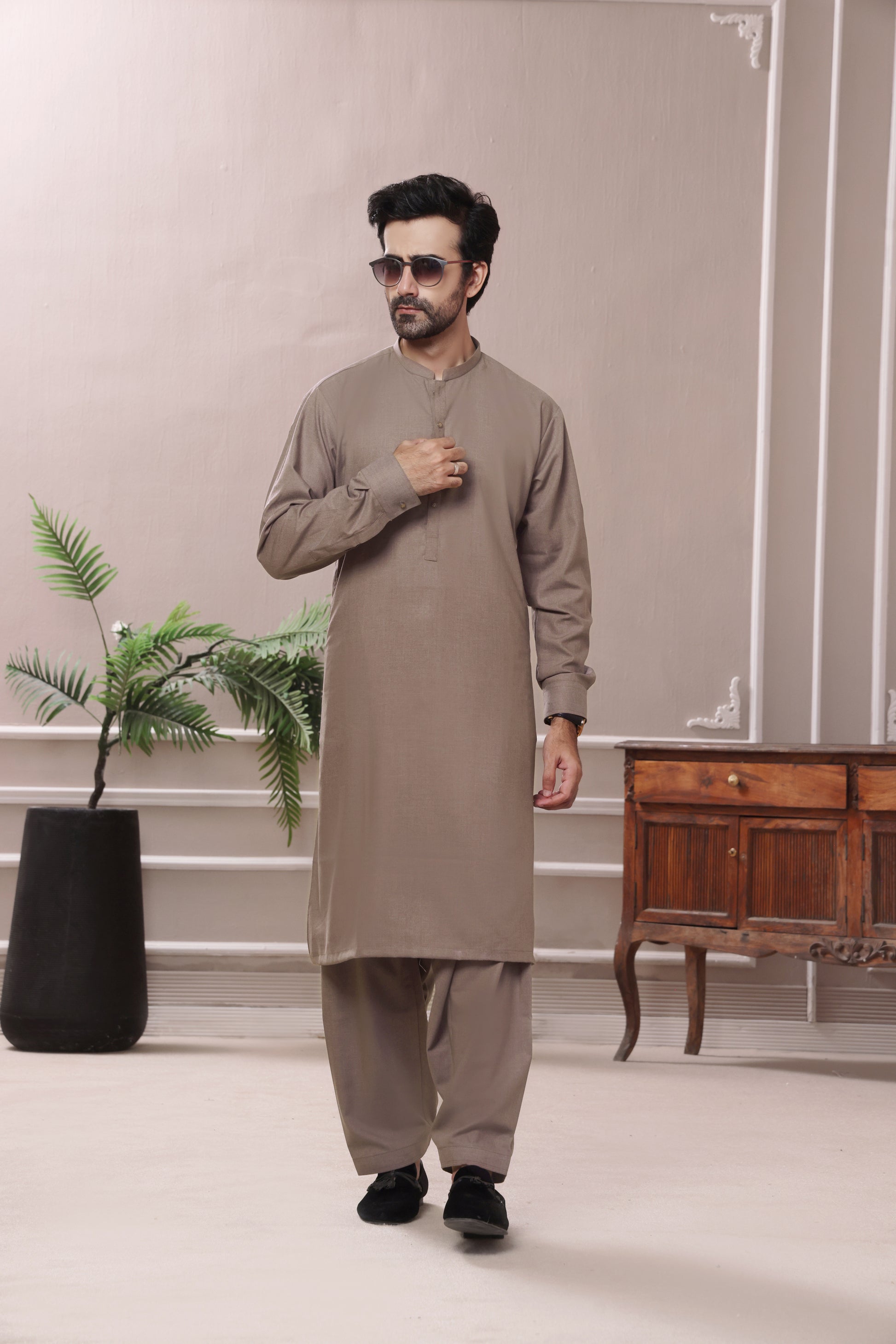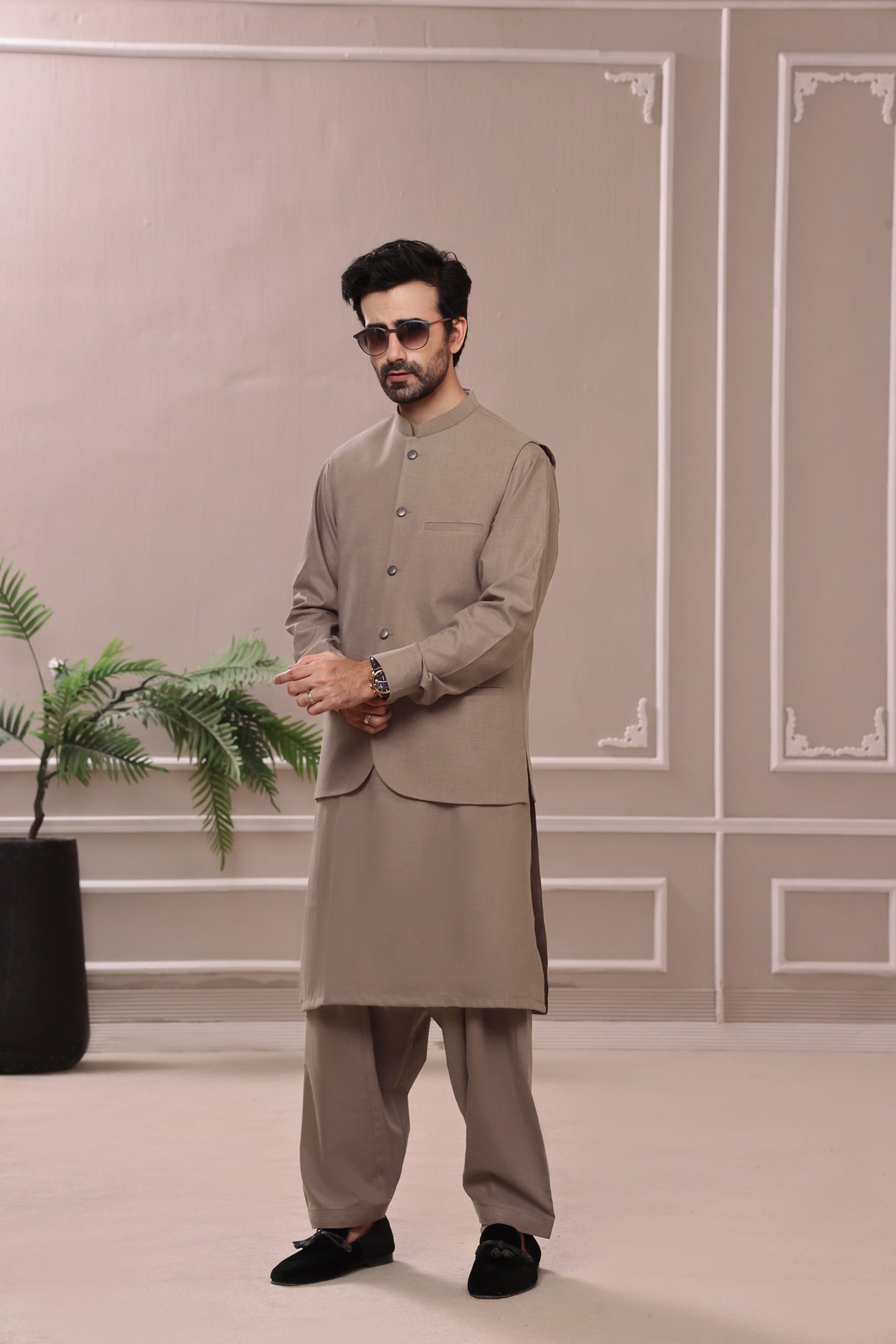 Signature summer Wear '25 Collection: Men's Formal Suiting Waistcoat paired with a Matching Blended Kameez Shalwar, designed to offer a refined and polished look for formal occasions. This sophisticated ensemble combines the timeless elegance of a tailored waistcoat with the comfort and versatility of a blended fabric, creating a perfect balance between style and practicality for the modern gentleman this summer season.