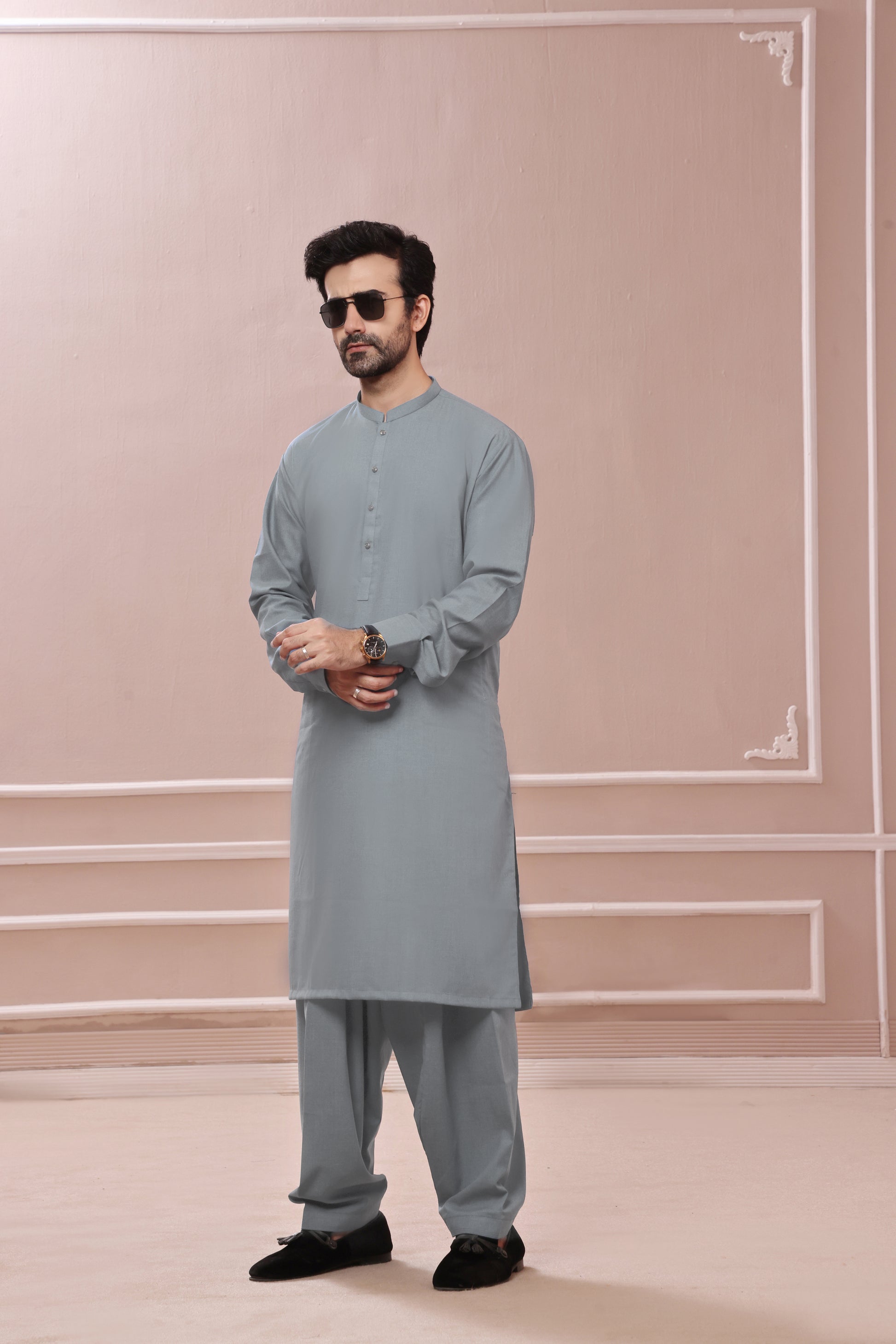 Signature SUMMER Wear '25 Collection: Men's Formal Suiting Waistcoat paired with a Matching Blended Kameez Shalwar, designed to offer a refined and polished look for formal occasions. This sophisticated ensemble combines the timeless elegance of a tailored waistcoat with the comfort and versatility of a blended fabric, creating a perfect balance between style and practicality for the modern gentleman this summer season.
