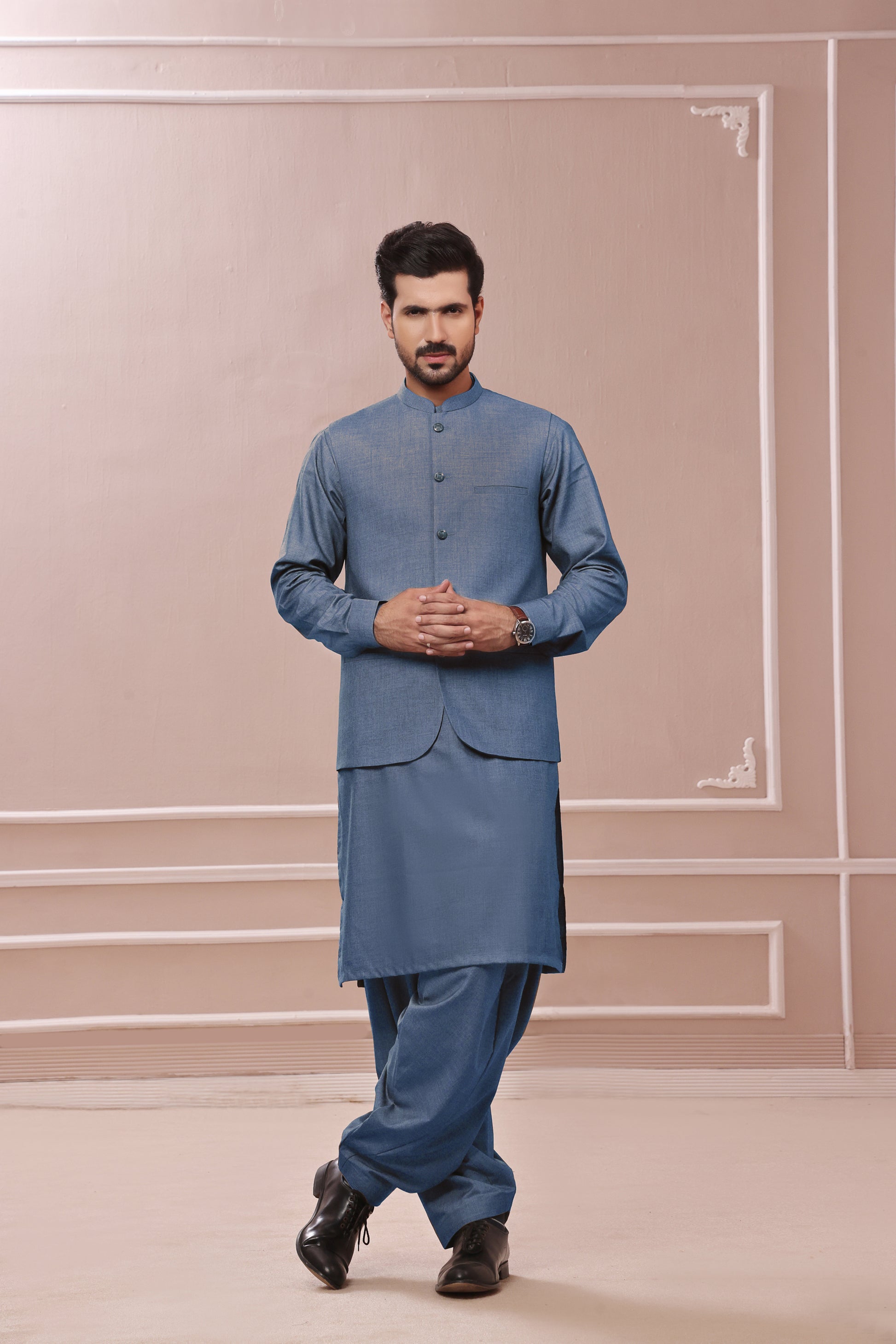 SIGNATURE SUMMER WARE' 25 Men's Formal Suiting Waistcoat with Matching Blended Kameez Shalwar
