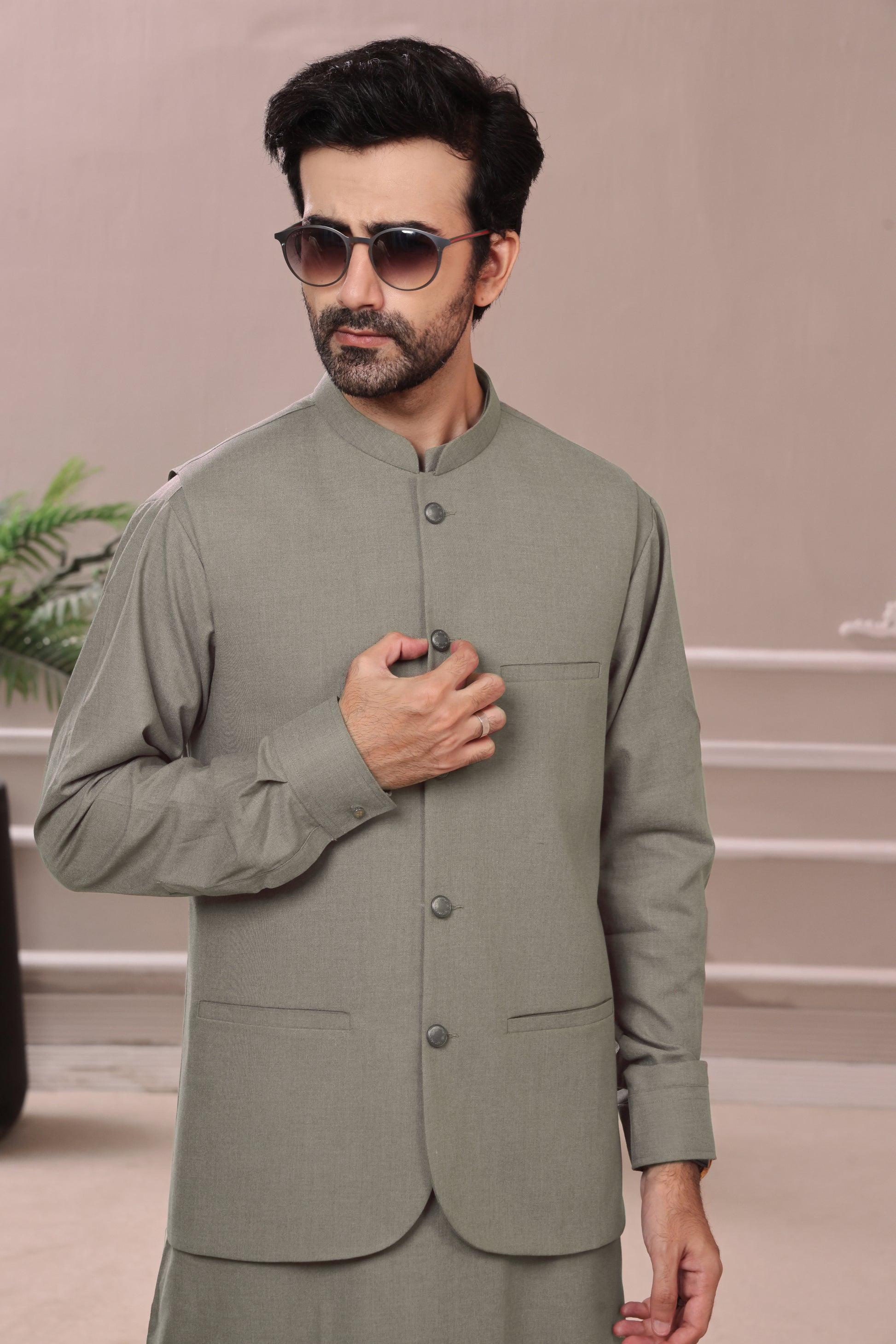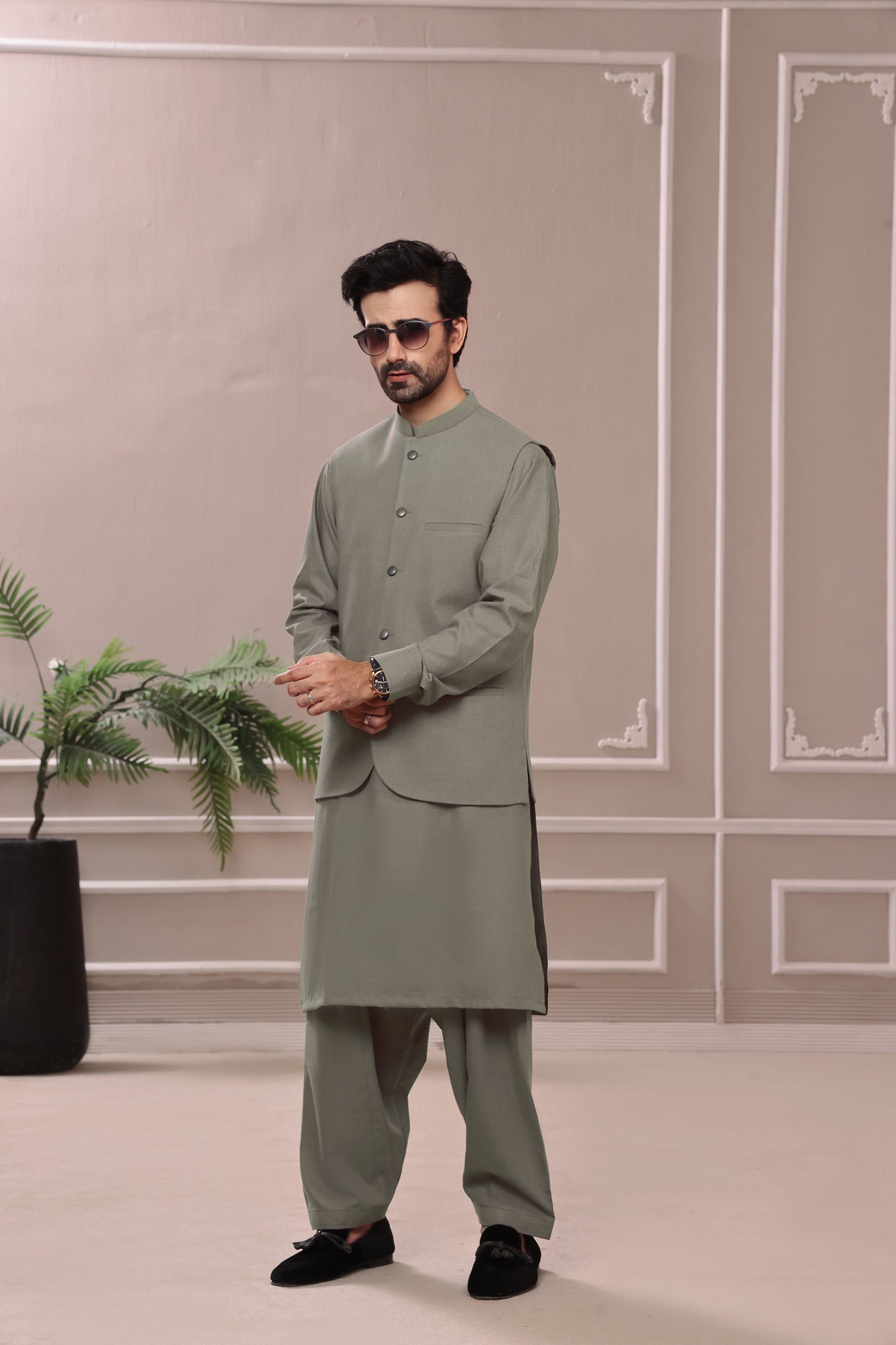 Signature SUMMER Wear '25 Collection: Men's Formal Suiting Waistcoat paired with a Matching Blended Kameez Shalwar, designed to offer a refined and polished look for formal occasions. This sophisticated ensemble combines the timeless elegance of a tailored waistcoat with the comfort and versatility of a blended fabric, creating a perfect balance between style and practicality for the modern gentleman this summer season.