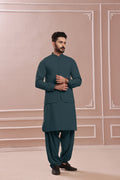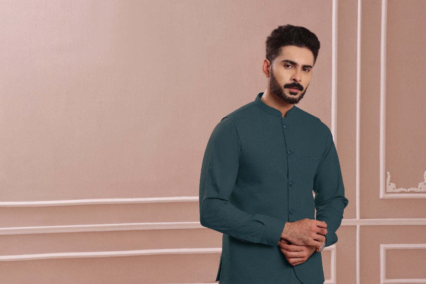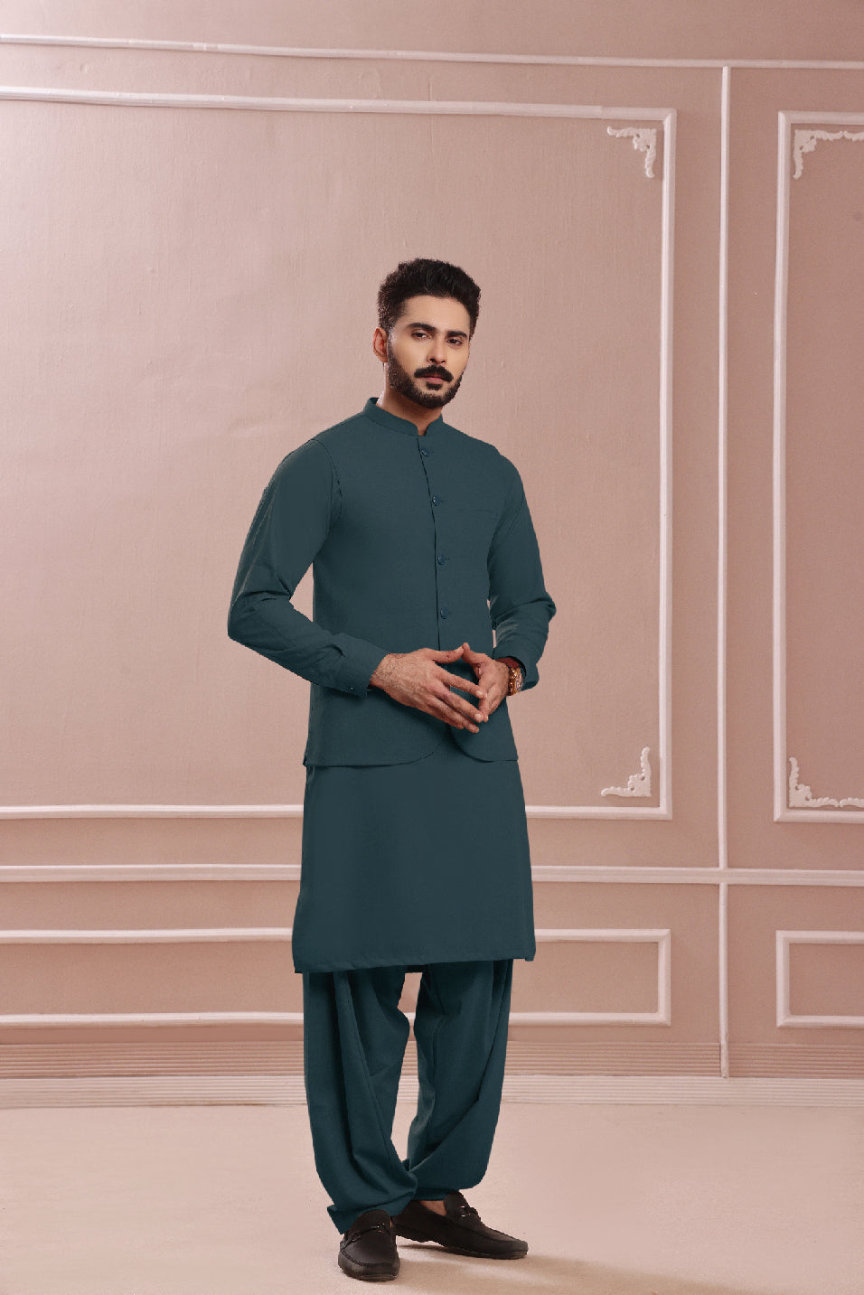 Signature SUMMER Wear '25 Collection: Men's Formal Suiting Waistcoat paired with a Matching Blended Kameez Shalwar, designed to offer a refined and polished look for formal occasions. This sophisticated ensemble combines the timeless elegance of a tailored waistcoat with the comfort and versatility of a blended fabric, creating a perfect balance between style and practicality for the modern gentleman this summer season.