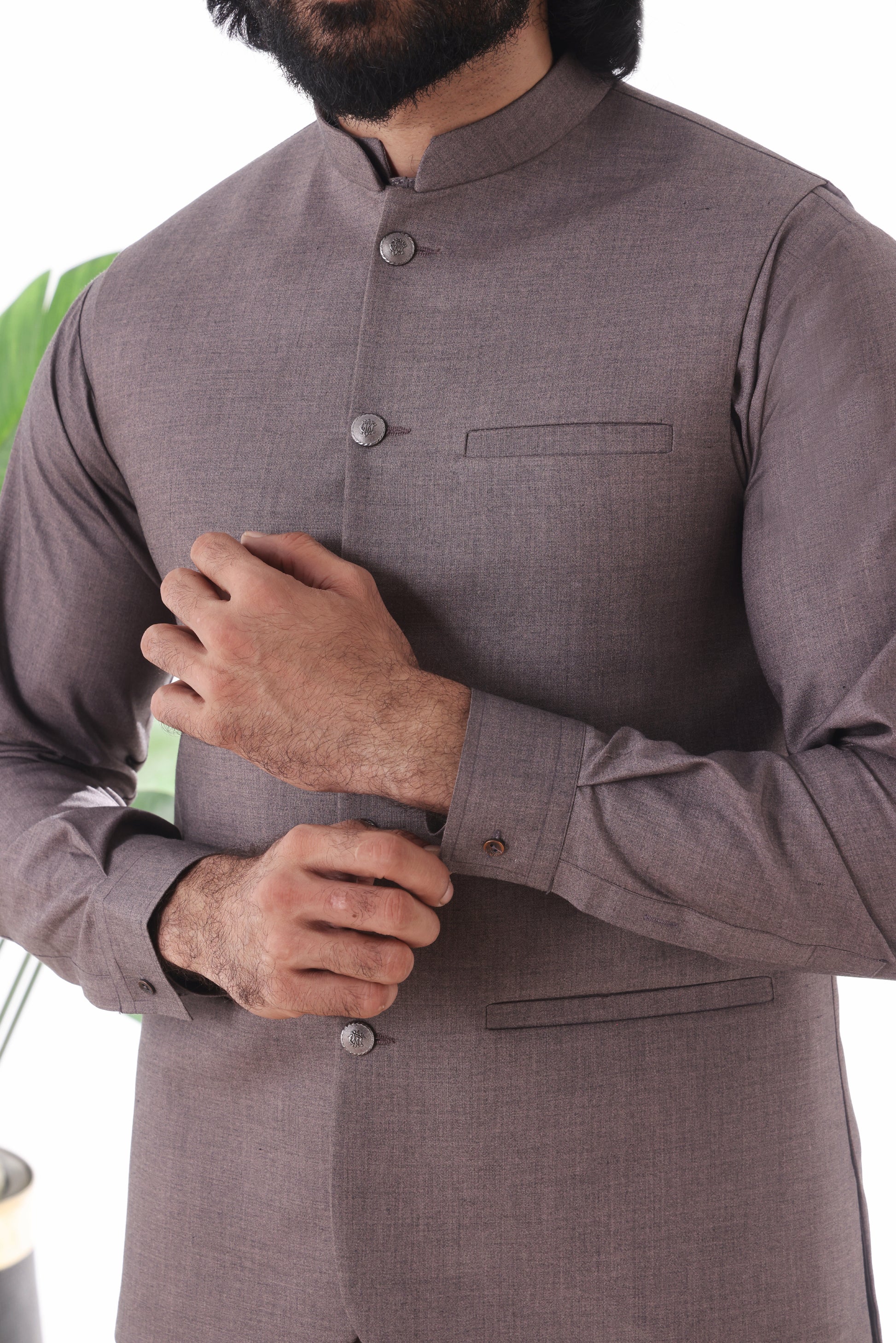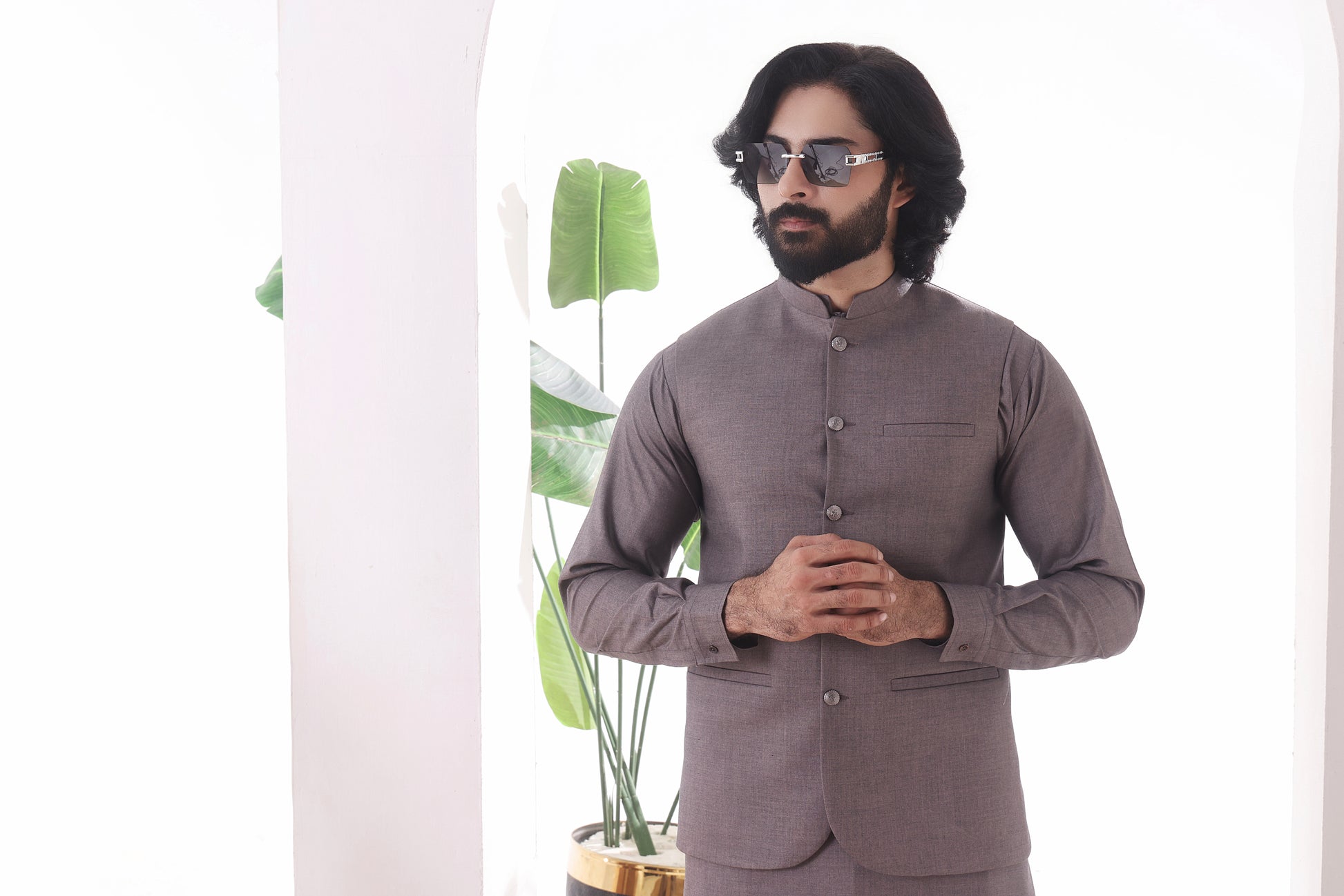Signature winter Wear '25 Collection: Men's Formal Suiting Waistcoat paired with a Matching Blended Kameez Shalwar, designed to offer a refined and polished look for formal occasions. This sophisticated ensemble combines the timeless elegance of a tailored waistcoat with the comfort and versatility of a blended fabric, creating a perfect balance between style and practicality for the modern gentleman this winter season.