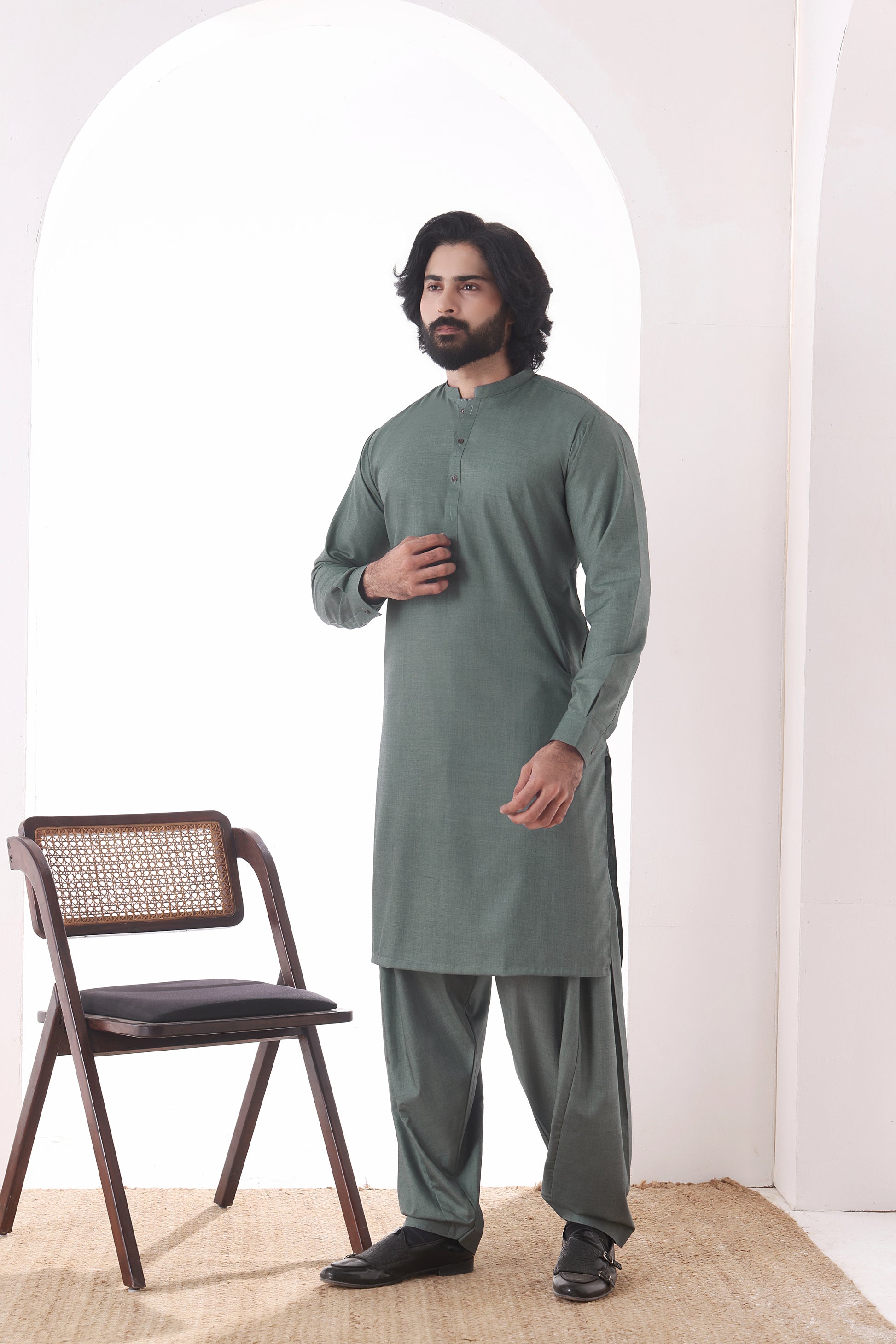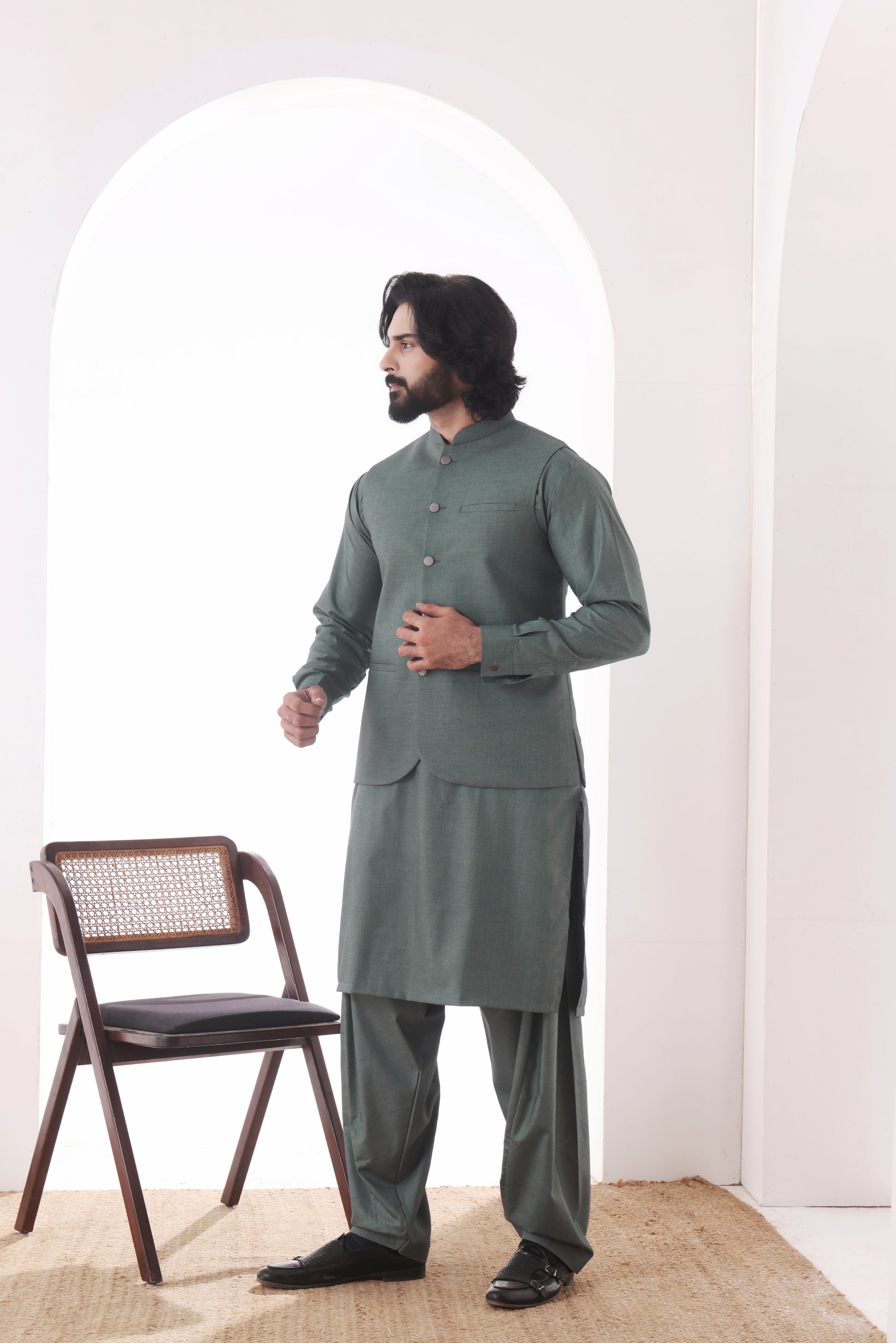 Signature winter Wear '25 Collection: Men's Formal Suiting Waistcoat paired with a Matching Blended Kameez Shalwar, designed to offer a refined and polished look for formal occasions. This sophisticated ensemble combines the timeless elegance of a tailored waistcoat with the comfort and versatility of a blended fabric, creating a perfect balance between style and practicality for the modern gentleman this winter season.